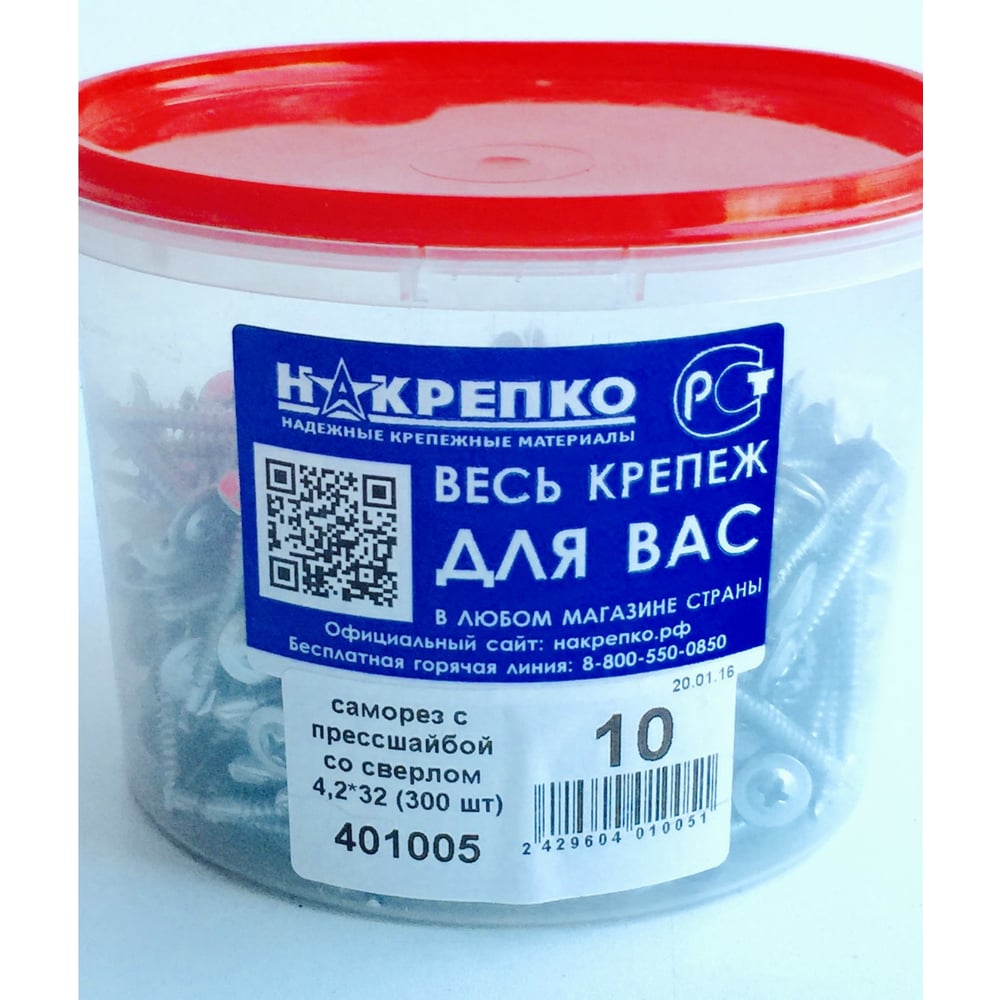 Саморез НАКРЕПКО с прессшайбой, со сверлом, 4,2х32, 300 шт. 401005