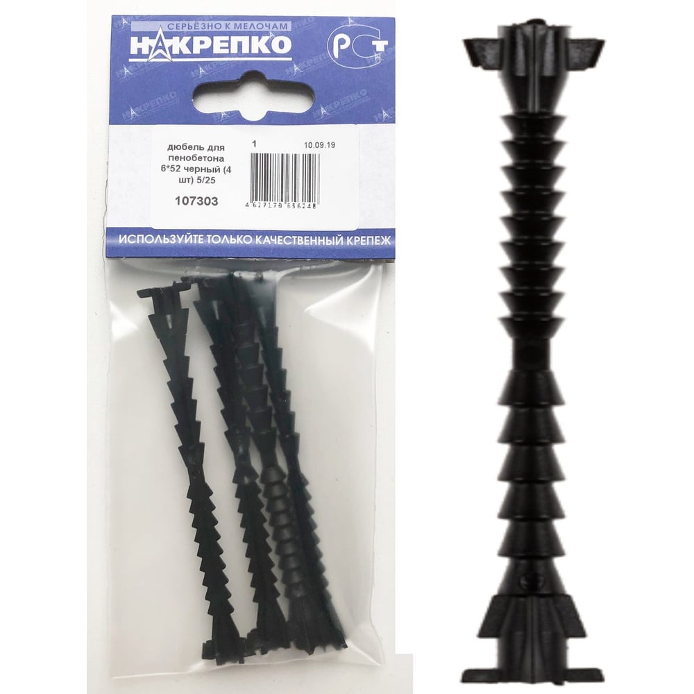 Дюбель НАКРЕПКО для пенобетона 6х52 черный 100 шт. 107303