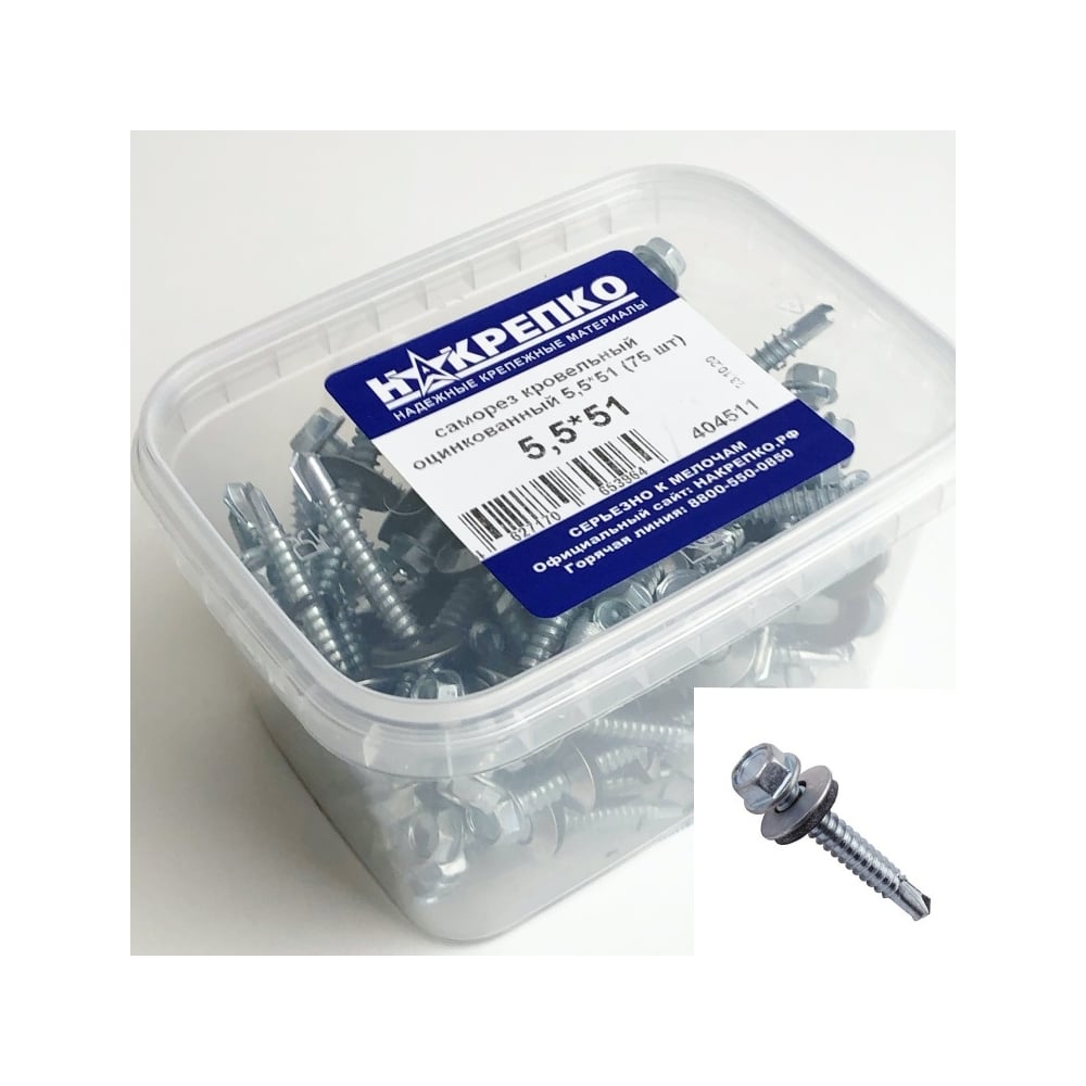 Кровельный саморез НАКРЕПКО оцинкованный 5,5х51, 75 шт. 404511