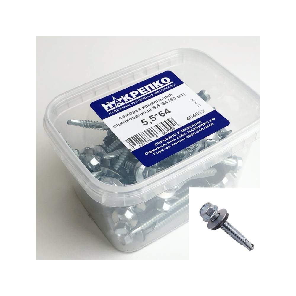Кровельный саморез НАКРЕПКО оцинкованный 5,5х64, 50 шт. 404512