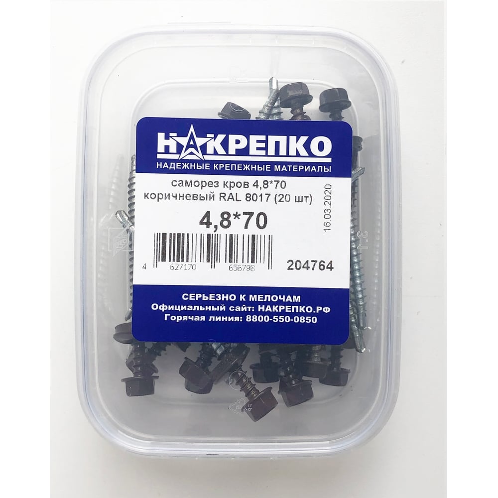 Кровельный саморез НАКРЕПКО 4,8х70 коричневый RAL 8017 20 шт. 204764