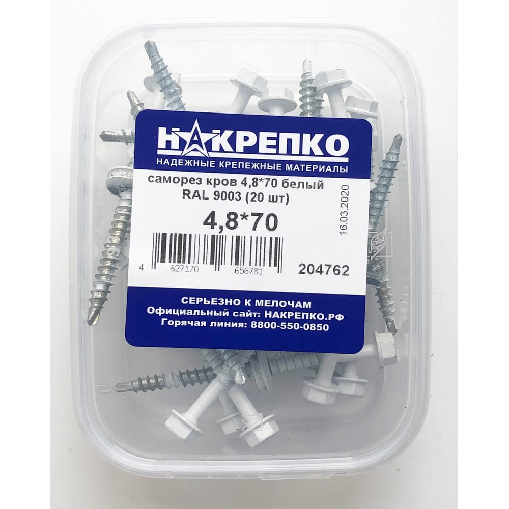Кровельный саморез НАКРЕПКО 4,8х70 белый RAL 9003 20 шт. 204762
