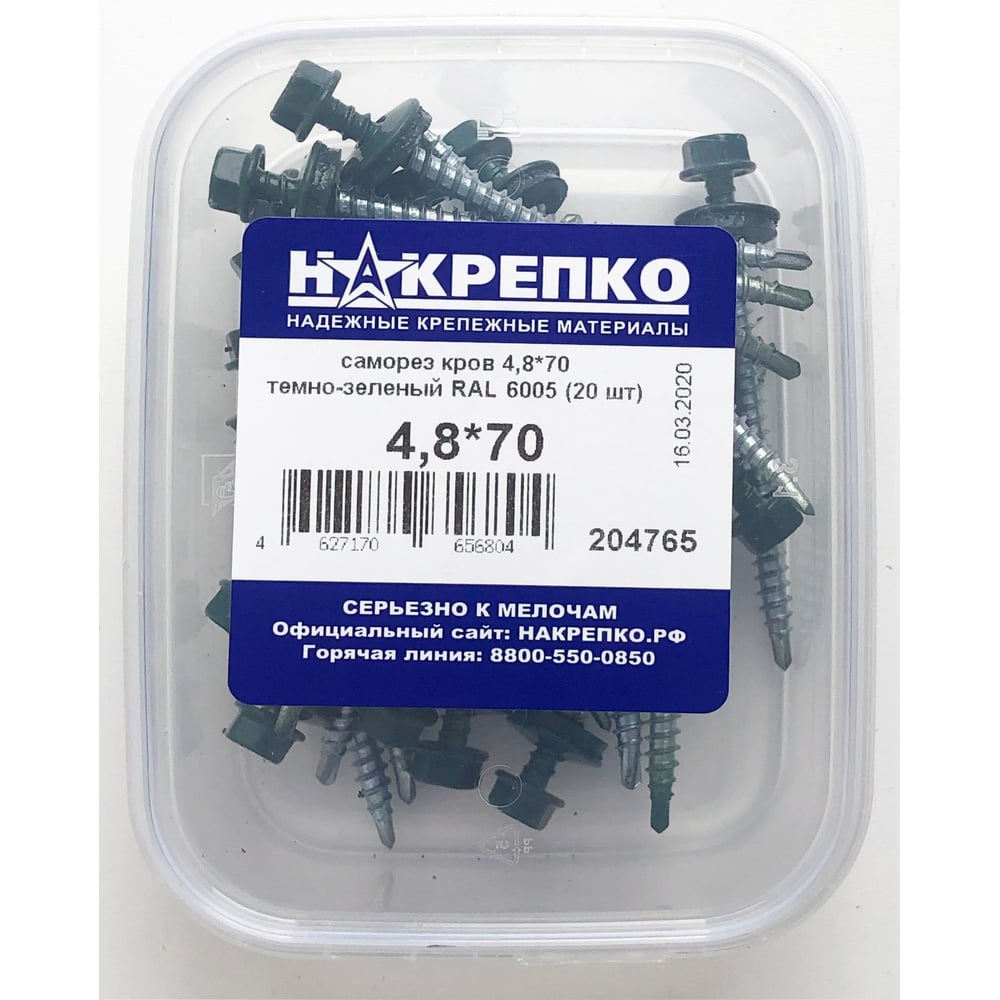 Кровельный саморез НАКРЕПКО 4,8х70 темно-зеленый RAL 6005 20 шт. 204765
