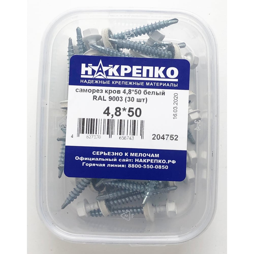 Кровельный саморез НАКРЕПКО 4,8х50 белый RAL 9003 30 шт. 204752