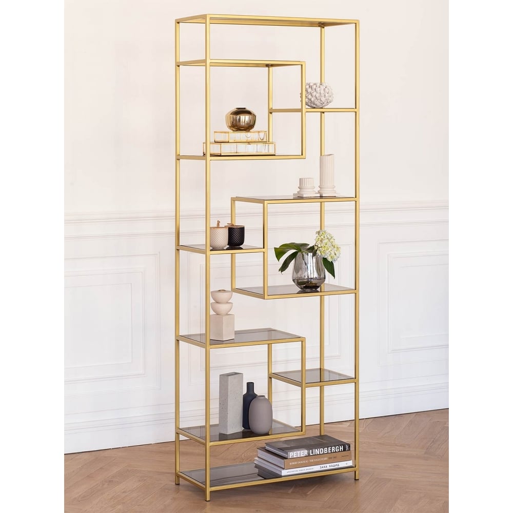 Стеллаж GreenWeen OLIVIA, золотой, полки стекло 1950x700x300 GW-OLIVIA-G-G