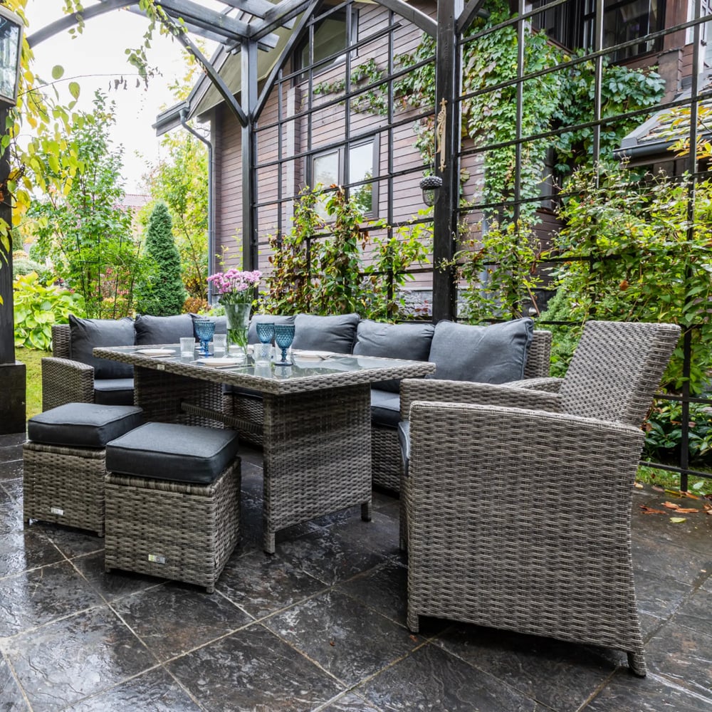 | Габариты в сложенном виде | Диван прямой 171х71х81 см Диван угловой 183х71х81 см Пуфы (2 шт.) 40х40х33 см Стол 150х90х70 см Обеденное кресло: 58x60x89 см мм |