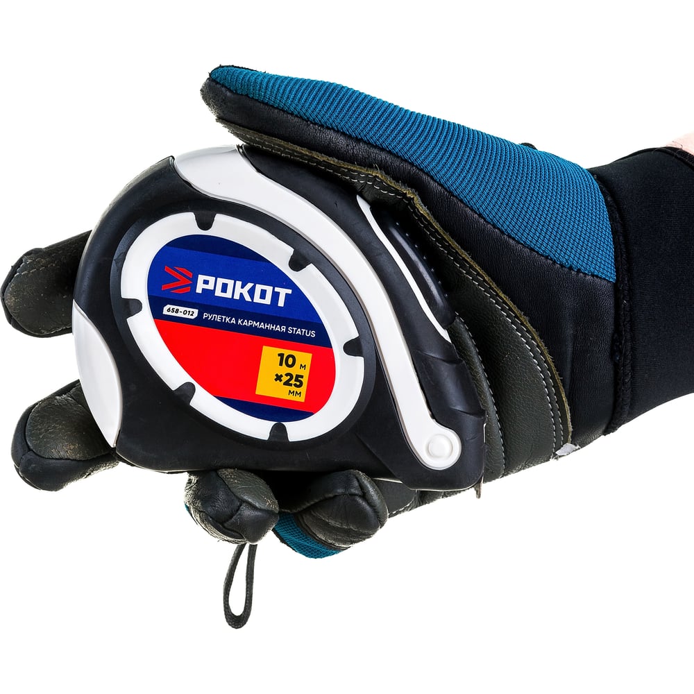 Рулетка РОКОТ карманная STATUS автостоп, 10мх25мм 658-012