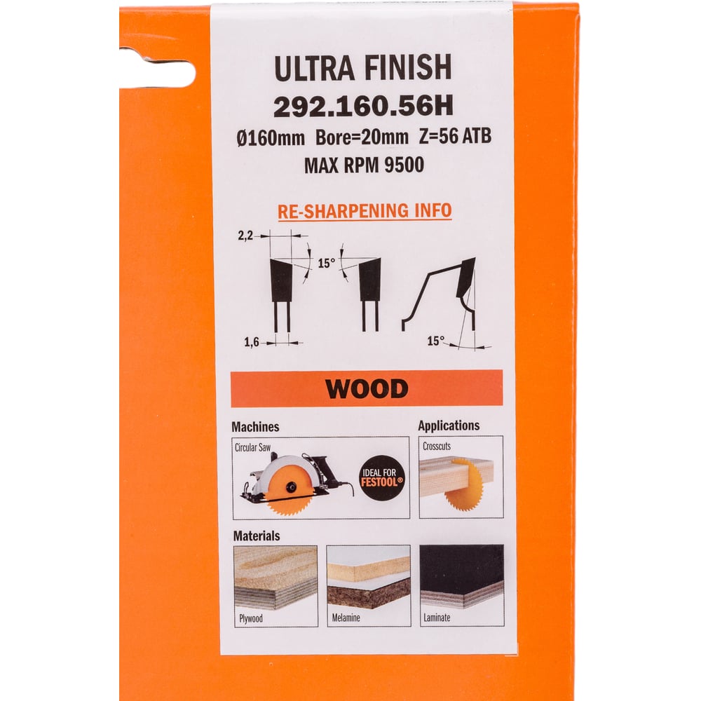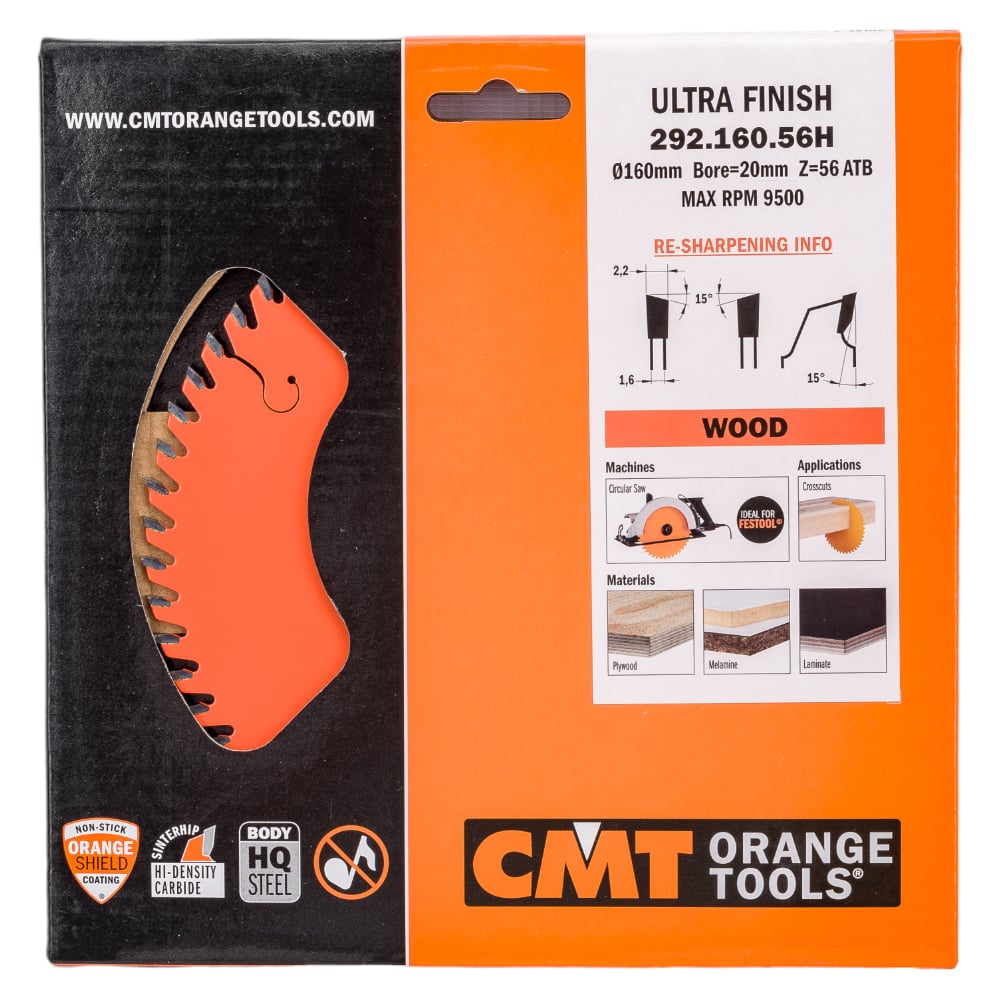 Cmt 160x20x2,2/1,6 z56 a=15 atb пила festool, ручной инстр. дерево: поперечно, фанера 292.160.56h
