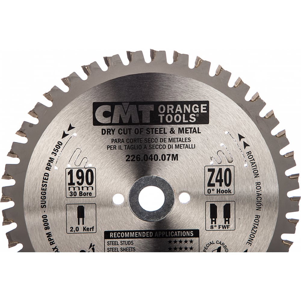 Cmt 190x30x2,0/1,6 z40 a=0 tcg пила сухой рез: железо, сталь 226.040.07m