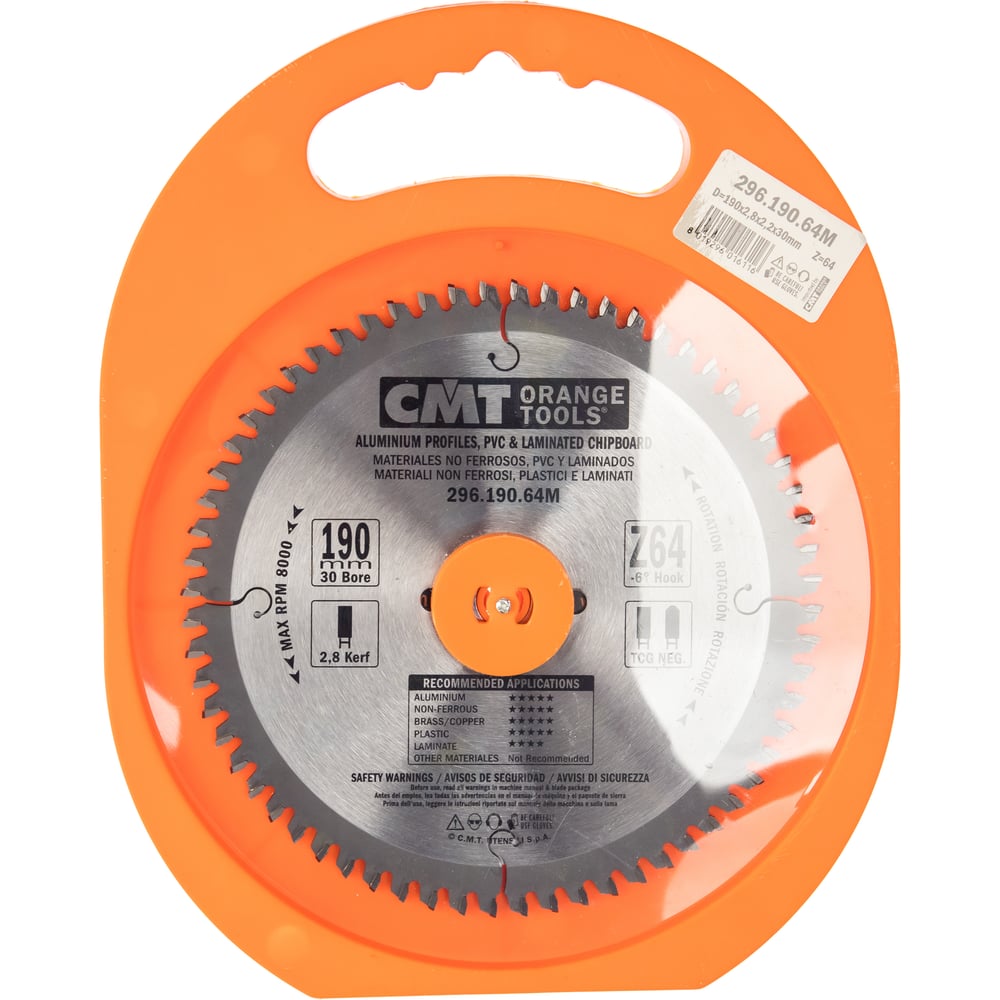 Cmt 190x30x2,8/2,2 z64 a=-6 tcg пила ламинат, цветные металлы, пластики 296.190.64m
