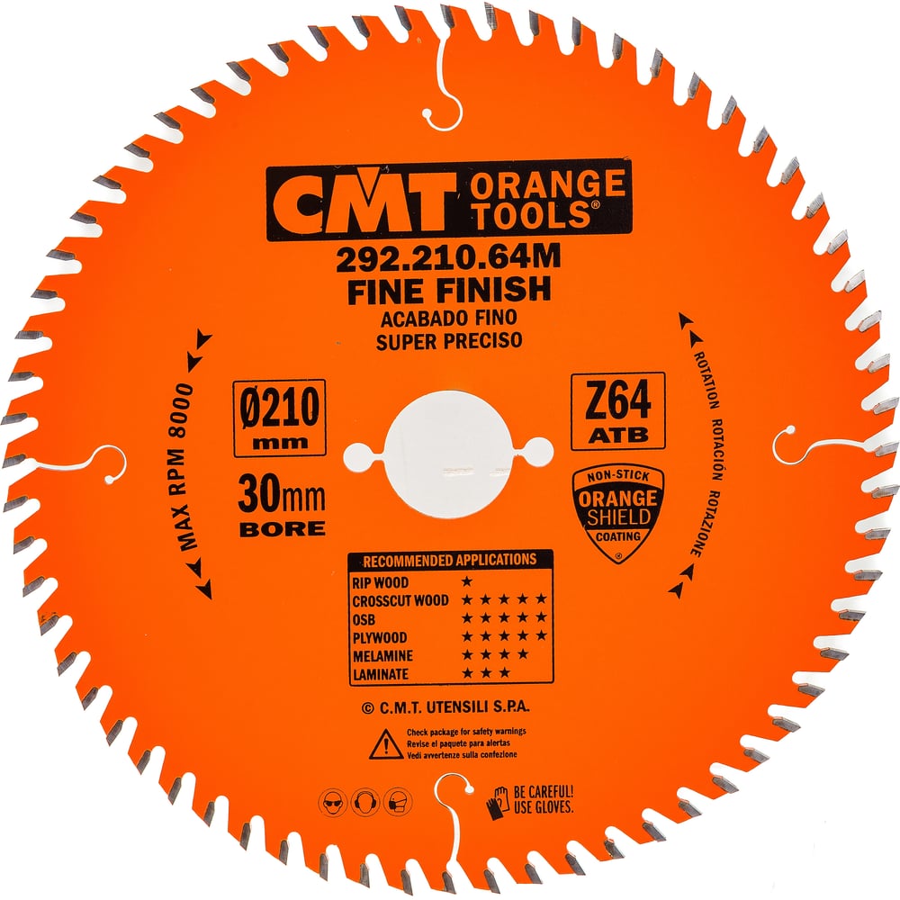 Диск пильный по дереву (210х30х2,8/1,8 мм; Z64) CMT 292.210.64M