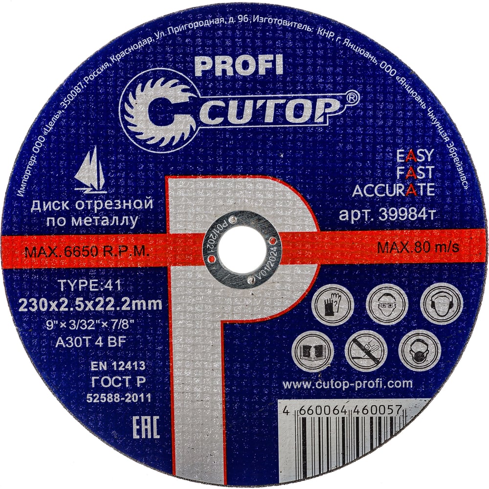 | Тип диска | отрезной |