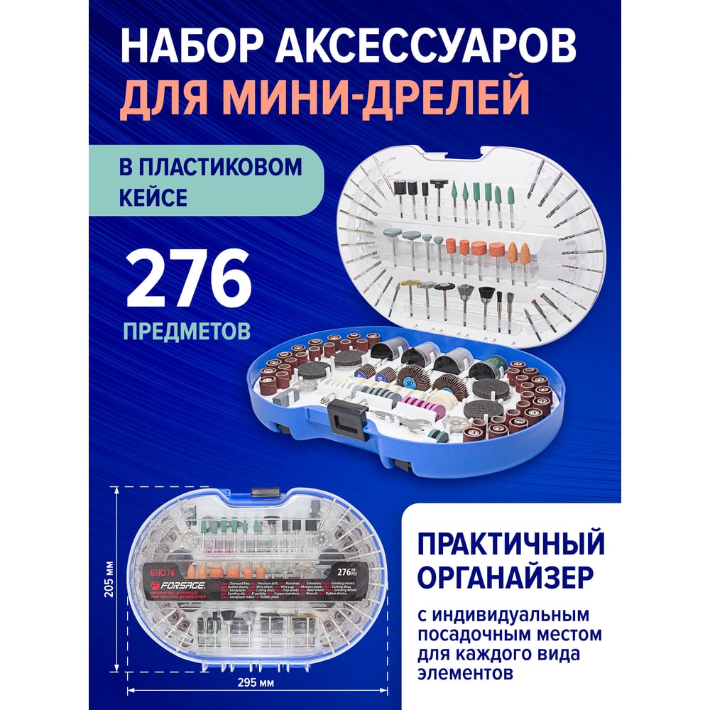 Набор аксессуаров для мини-дрелей 276 предметов в пластиковом кейсе Forsage F-GSK276