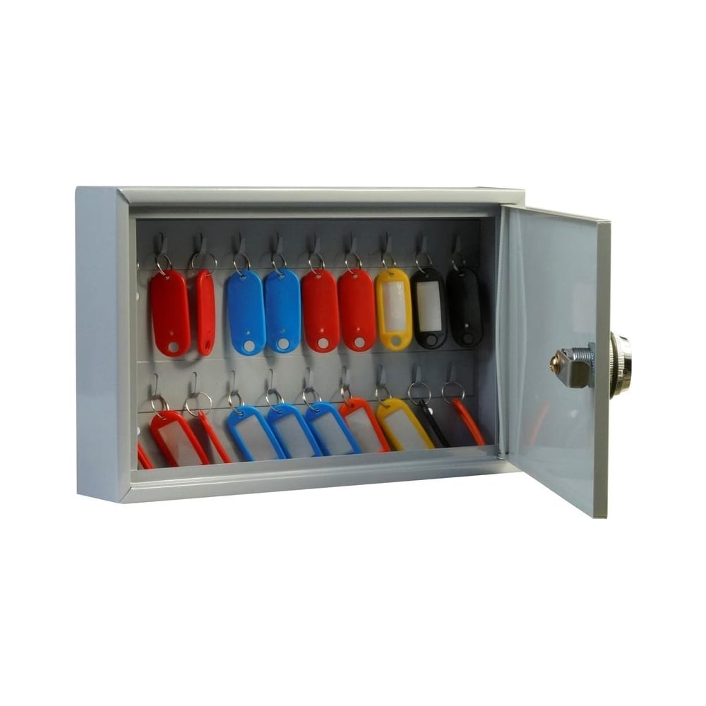 Высота 180 мм Ширина 300 мм Цвет серый Материал корпуса металл Глубина 50 мм Количество ключей 20 шт Тип замка кодовый Количество ярусов 2 Брелоки в комплекте нет шт