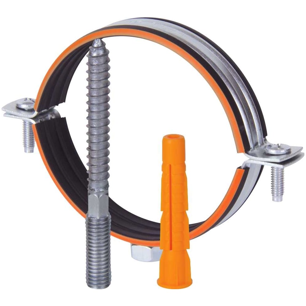 Трубный металлический хомут HUMALT М8 (39-46) 1.1/4", с гайкой, шпилькой-шурупом и дюбелем 007040104