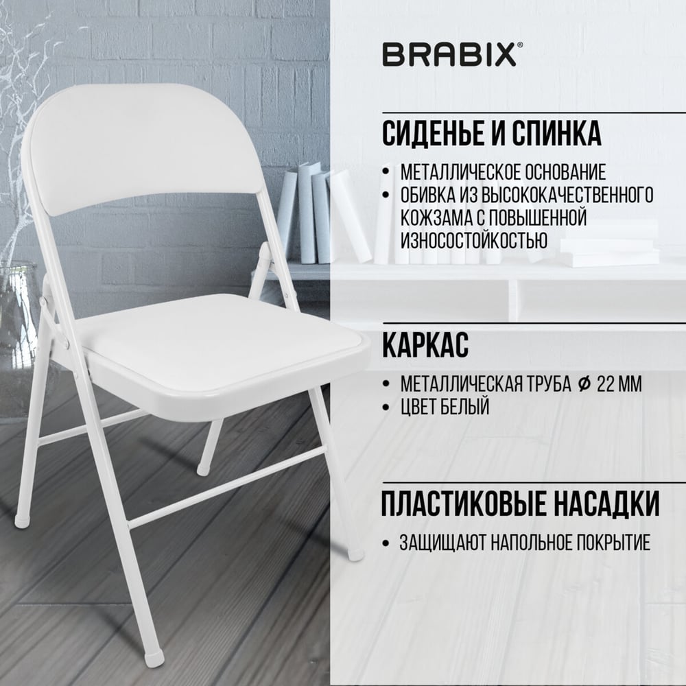 Стул складной BRABIX Golf Plus Cf-003 Комфорт, белый каркас, кожзам белый 532888