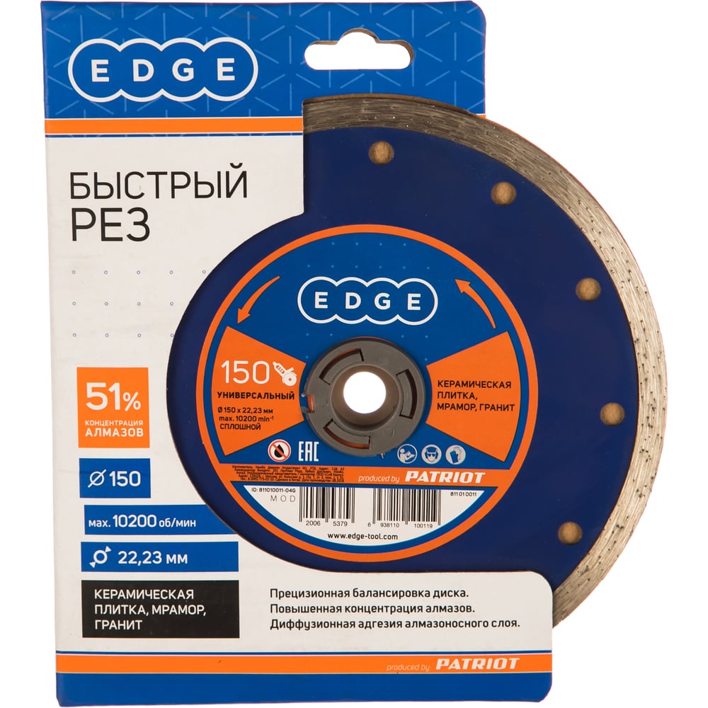 Edge by patriot диск алмазный сплошной 150х22,23 универсальный 811010011