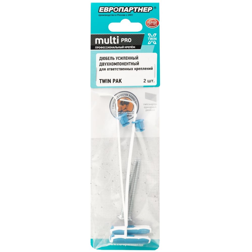 Дюбель для ответственных креплений к гипсокартону ЕВРОПАРТНЕР TWIN PAK (2 шт.) TW 0124 3