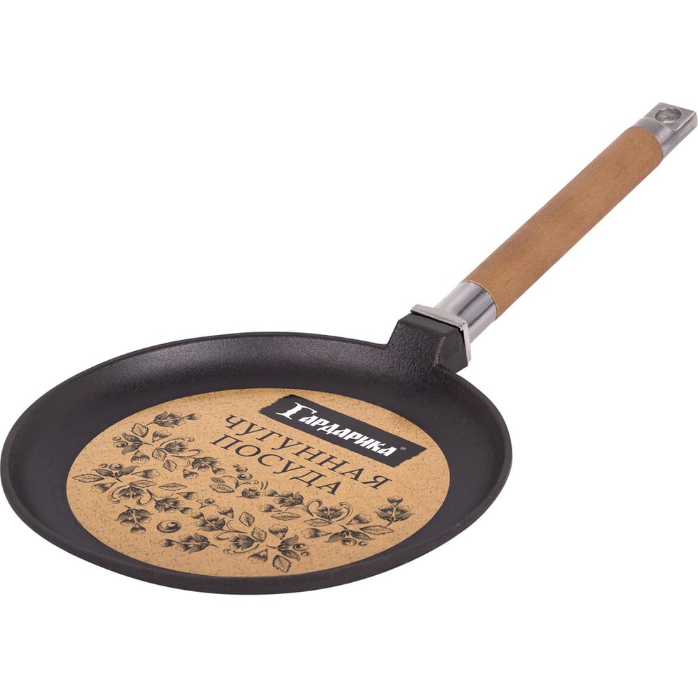 Блинная чугунная сковорода ОФИСМАГ 22 см, со съемной ручкой, подходит для индукции, Гардарика 0822 700727