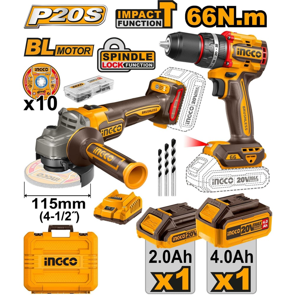Набор INGCO 20В, BL шуруповерт 66Нм и УШМ 115/125 мм SUPER INDUSTRIAL CKLI20273