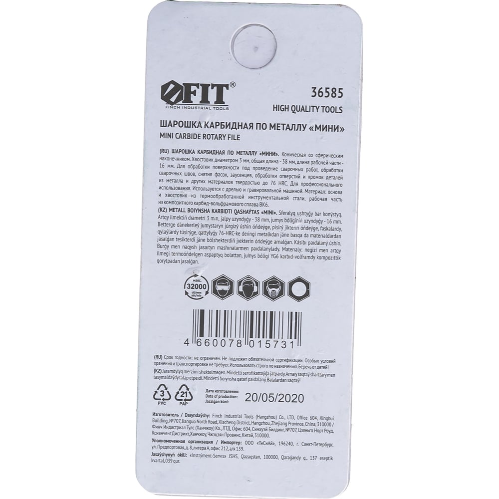 Карбидная шарошка по металлу FIT HQ 36585