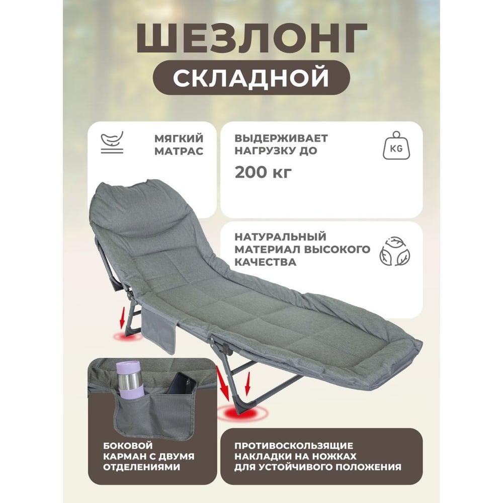 Складной шезлонг Forsage 32x64x200см, темно-серый F-FG-HY-8008BL(52531)
