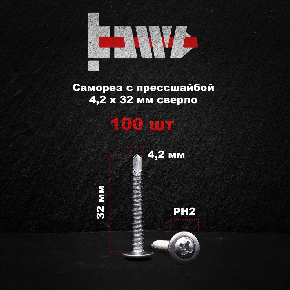 Саморез с прессшайбой BOWT сверло, 4,2x32, 100 шт. P02368