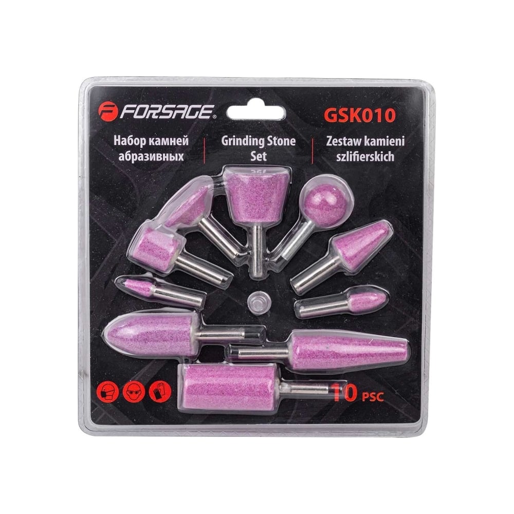 Набор камней абразивных, 10 предметов, хвостовик 6 мм, в блистере Forsage F-GSK010(19747)