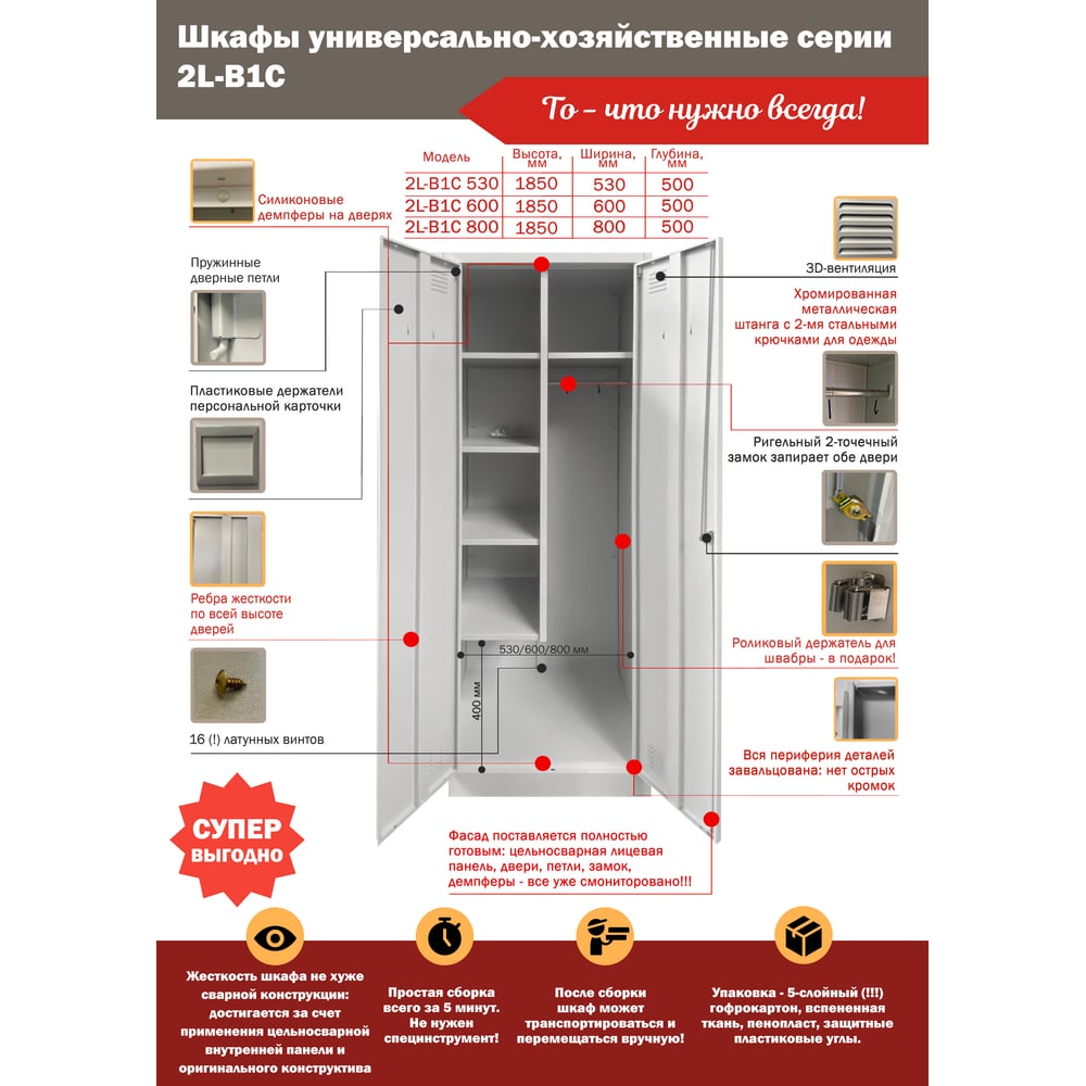 | Габариты без упаковки | 500х800х1850 мм |