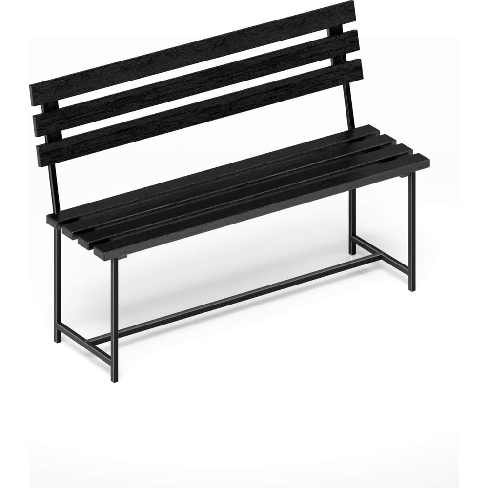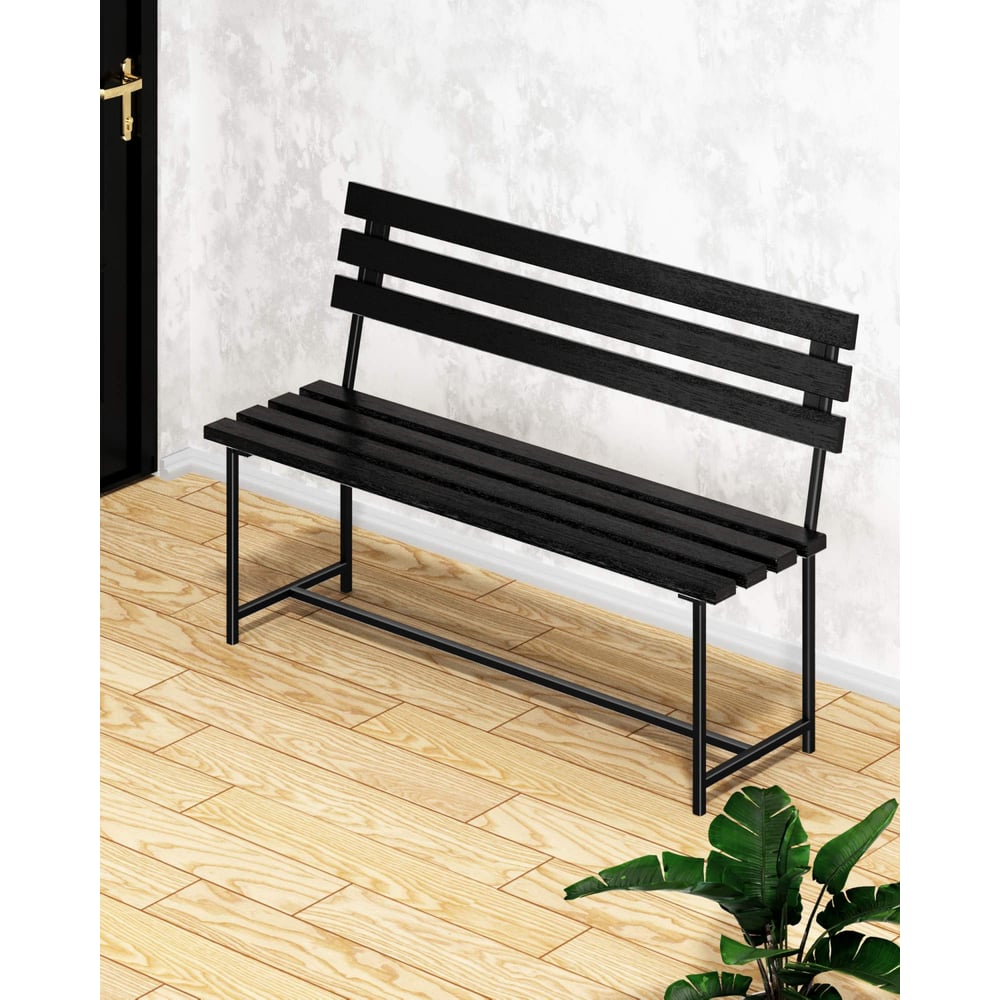Скамейка садовая Solarius Классика с деревянными спинкой и сиденьем розового цвета, лавочка для дачи с черным металлическим каркасом skam-spin-roz