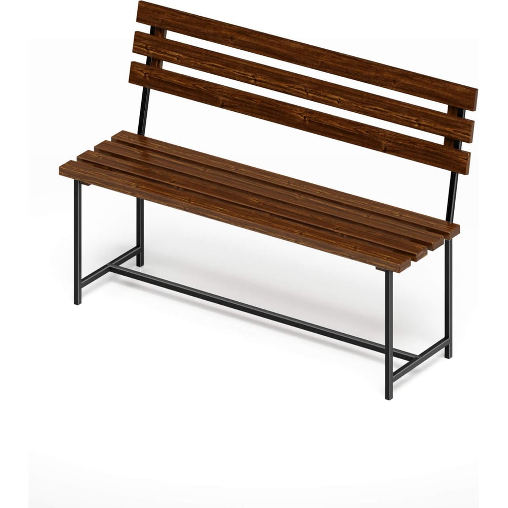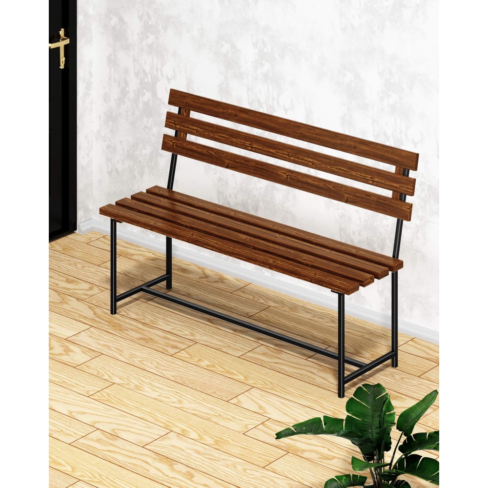 Скамейка садовая Solarius Классика с деревянными спинкой и сиденьем цвета темного дуба, лавочка для дачи с черным металлическим каркасом skam-spin-temd