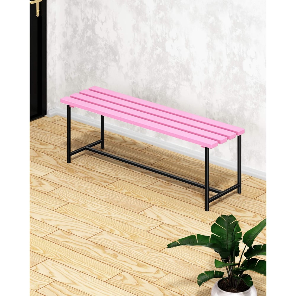 Скамейка садовая Solarius Классика с деревянным сиденьем из 4-ех досок розового цвета, лавочка для дачи с черным металлическим каркасом skam-roz