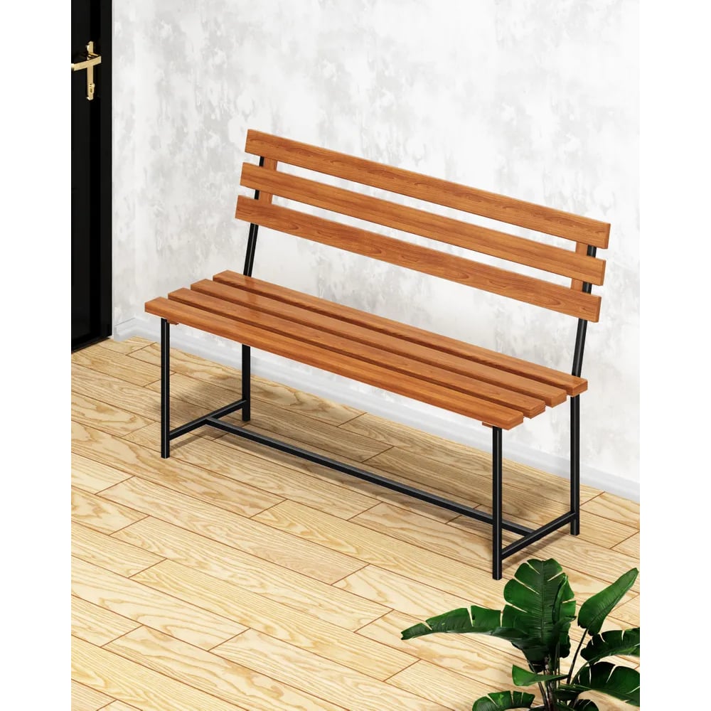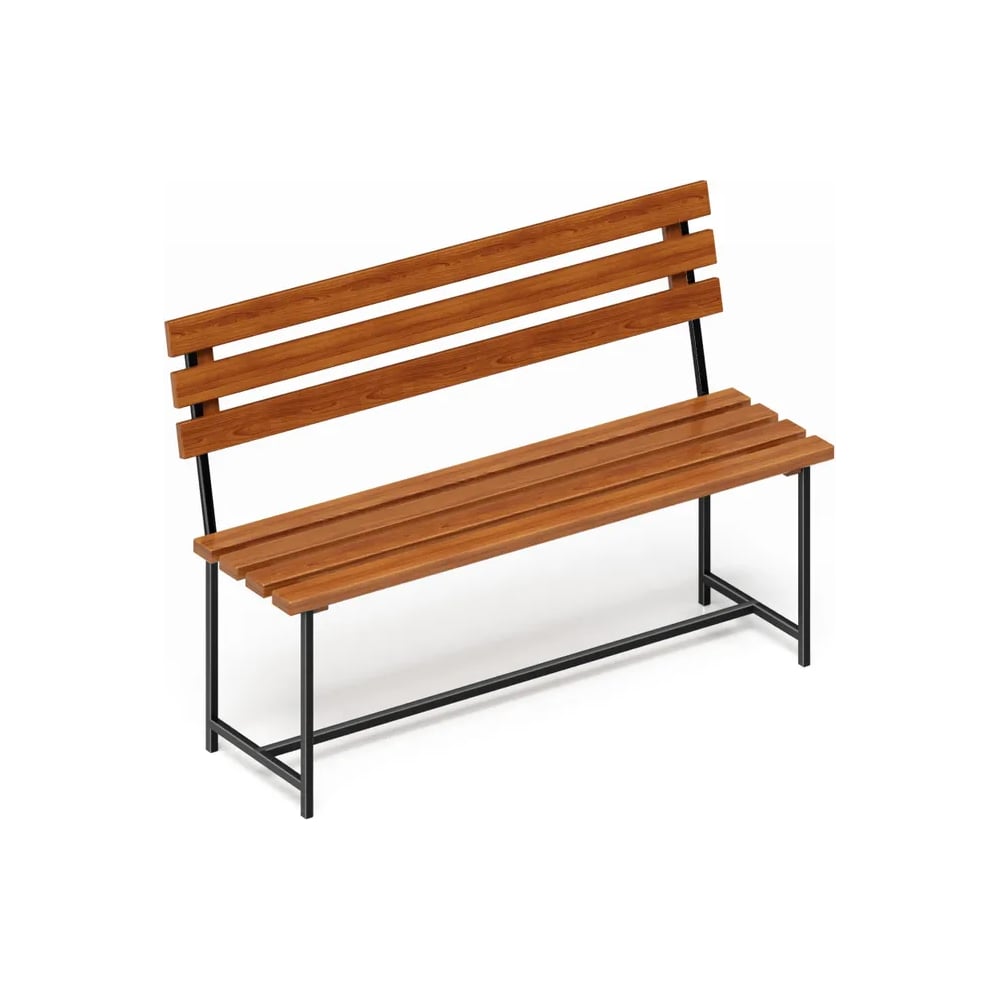 Скамейка садовая Solarius Классика с деревянными спинкой и сиденьем цвета ольхи, лавочка для дачи с черным металлическим каркасом skam-spin-olha