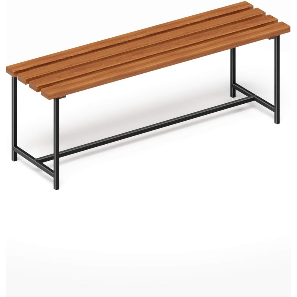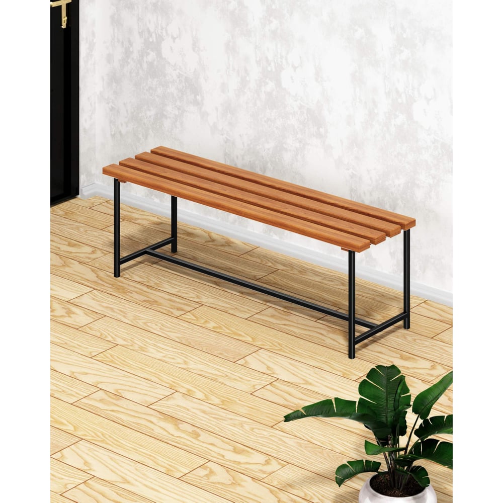 Скамейка садовая Solarius Классика с деревянным сиденьем из 4-ех досок цвета ольхи, лавочка для дачи с черным металлическим каркасом skam-olha