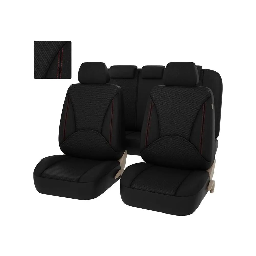 Материал жаккард/экокожа Цвет черный Марка автомобиля универсальные Модель автомобиля универсальные Влагостойкость нет Использование с боковыми подушками безопасности да Карман в спинках передних сидений да Количество предметов 6 Наполнитель поролон