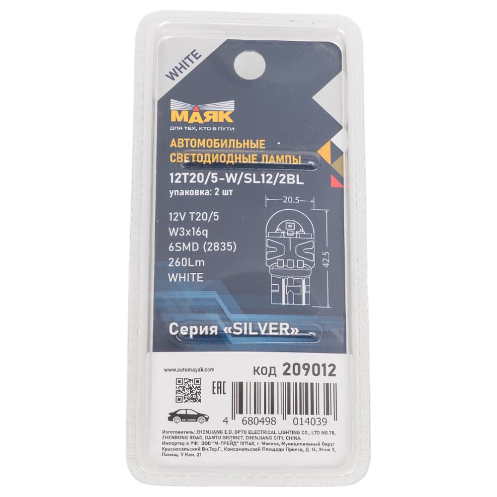 Автомобильная светодиодная лампа для стоп-сигналов, указателей поворота Маяк 12T20/5-W/SL12/2BL