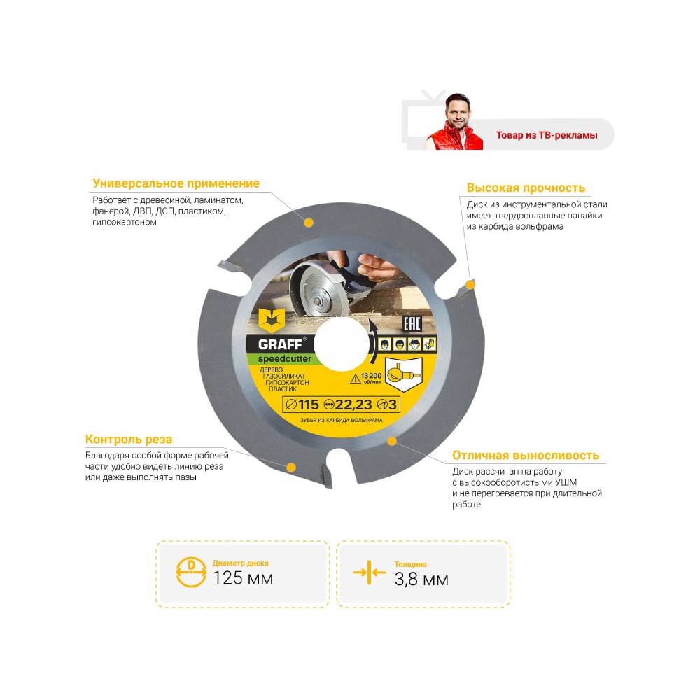 Диск пильный по дереву для угловой шлифмашины GRAFF Speedcutter