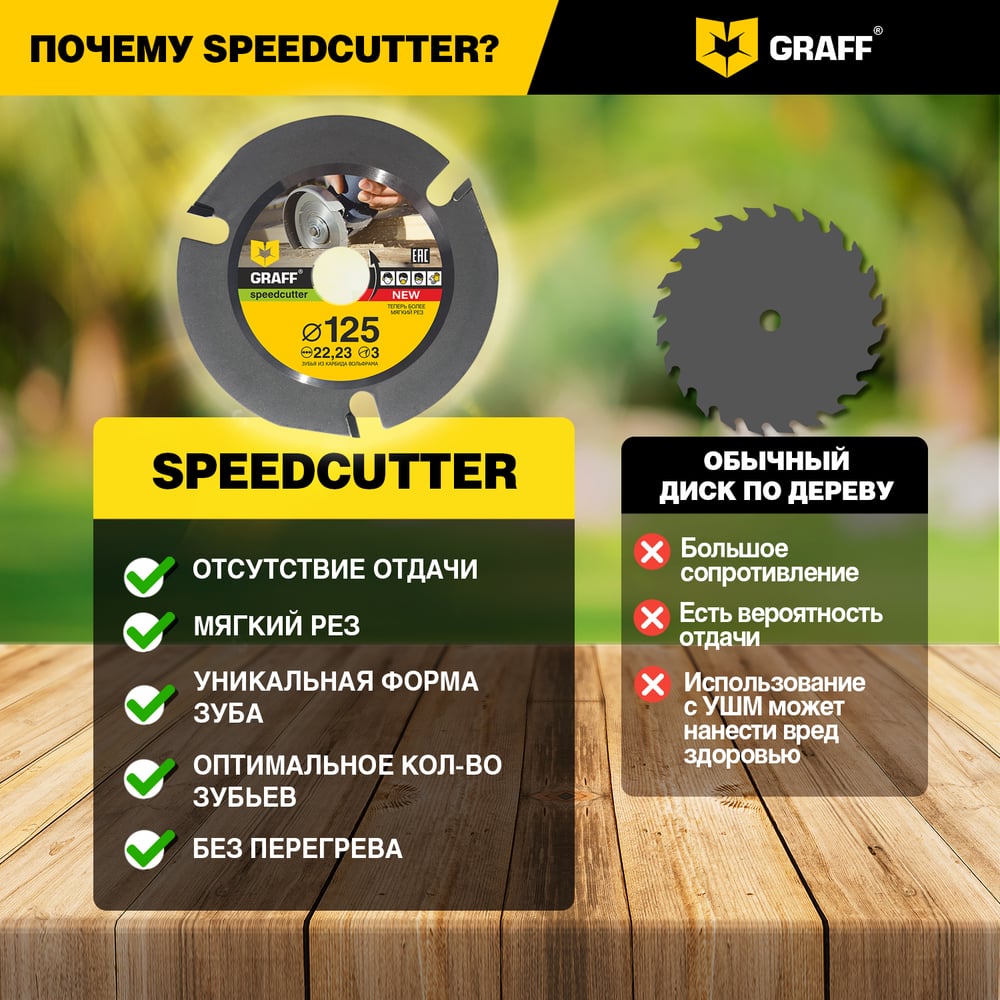 Диск пильный по дереву для УШМ Speedcutter (125х22.2 мм) GRAFF