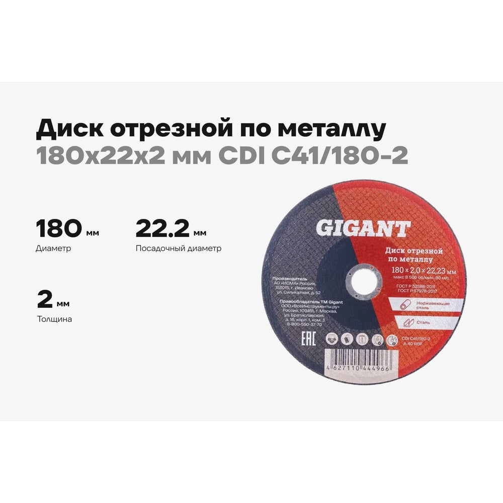| Тип диска | отрезной |