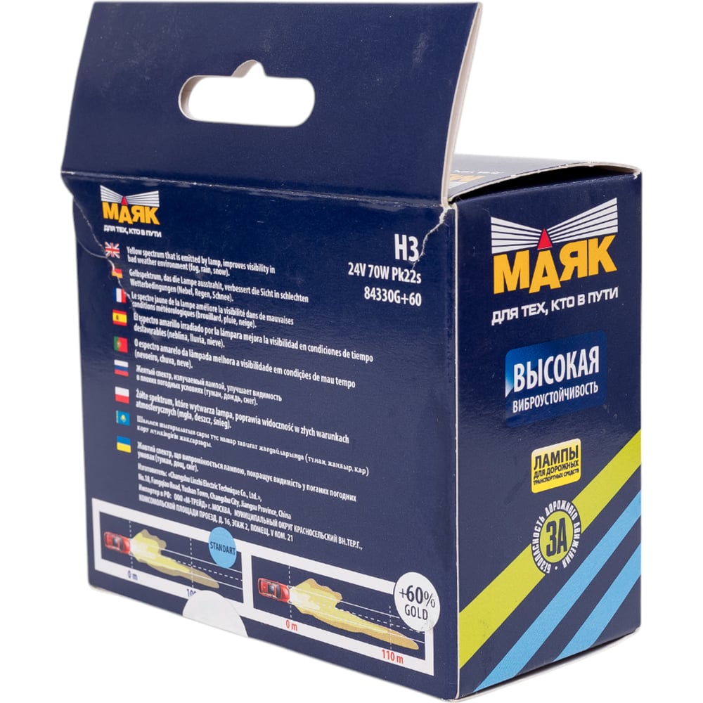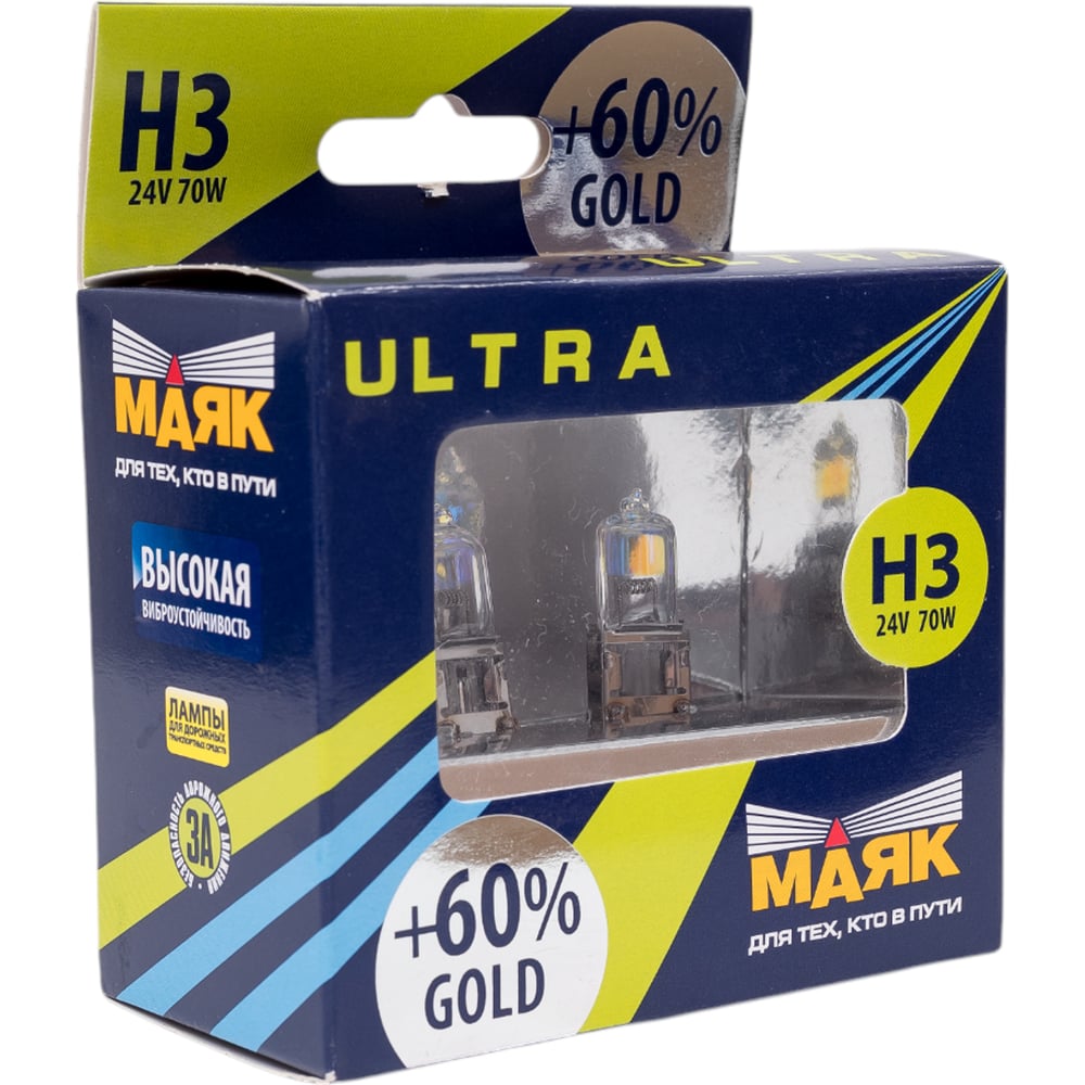 Автомобильная лампа МАЯК Н3 24V 70W PK22s Gold +60% ULTRA 84330G+60