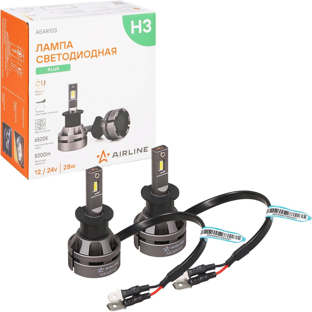 Лампa светодиодная Airline H3, 12/24В, 28Вт, 6500К(Белый), 5000Лм, для рефлект./линз. 2 шт. PLUS AEAR103