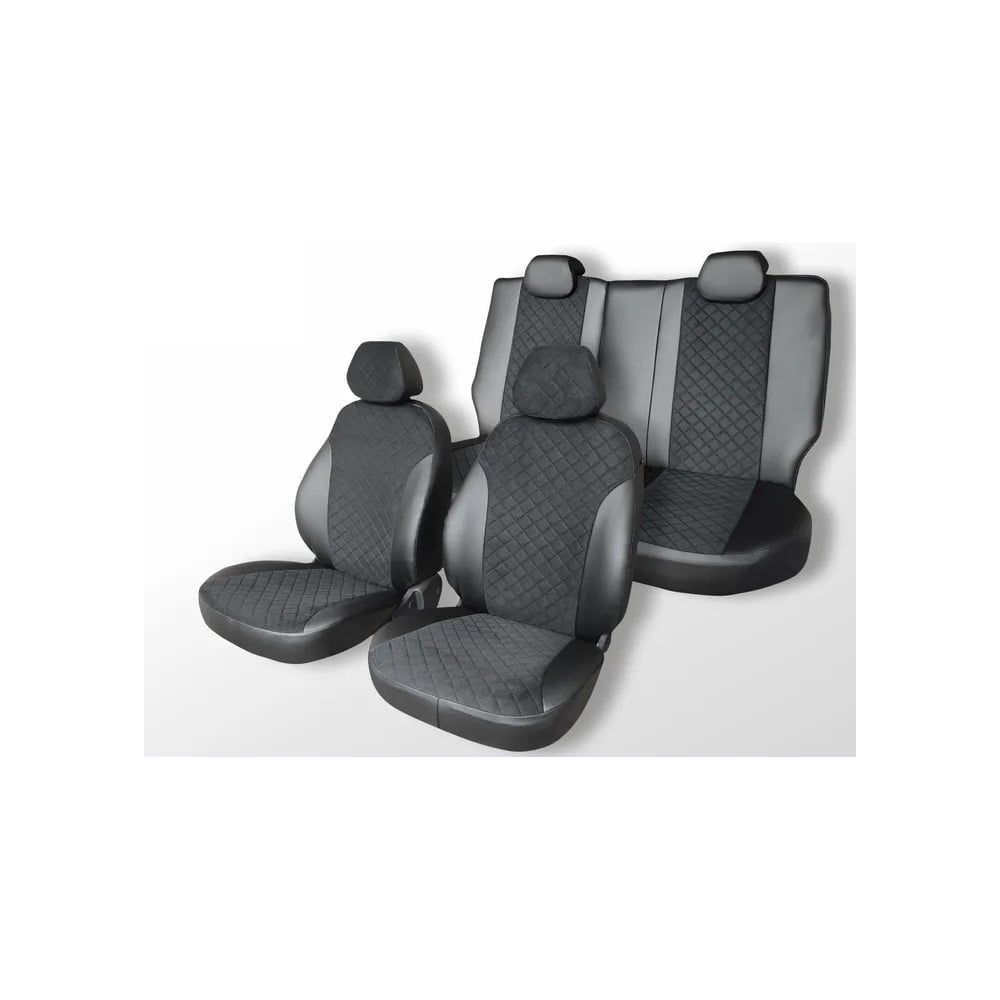 Чехлы на сиденья DEFLY Kia Rio, 2016-2022, экокожа черная/замша черная ромб Kia3-2ZR