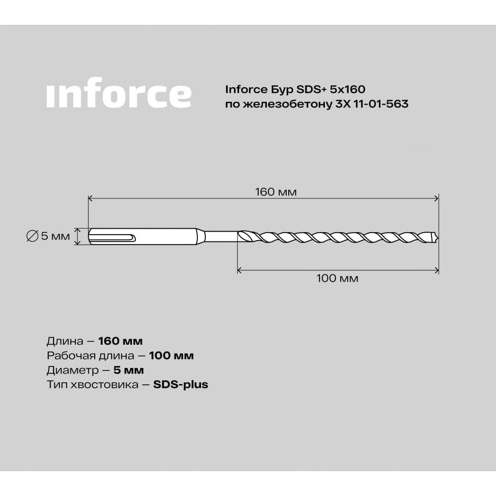 Inforce бур sds+ 5х160 по железобетону 3x 11-01-563