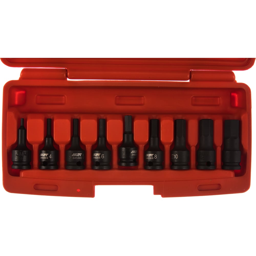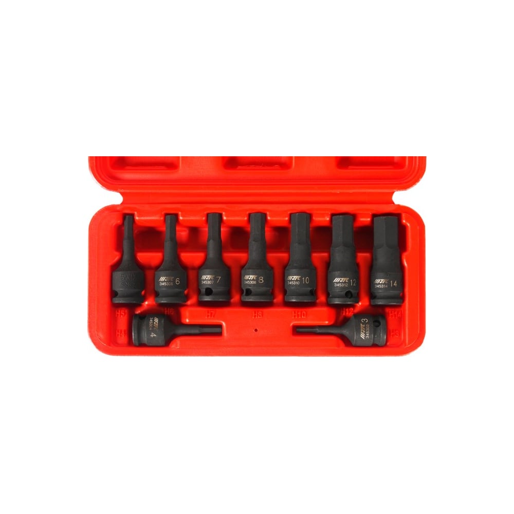 Набор ударных бит-головок 3/8" HEX H3-14 мм, длина 52 мм, в кейсе (9 предметов) JTC J309H