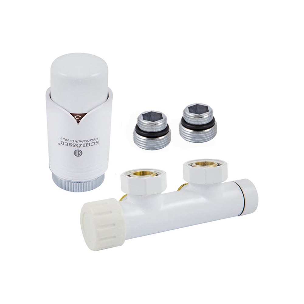Узел подключения SCHLOSSER DUO-PLEX 3/4xМ22x1.5 +2 ниппеля 1/2x3/4 угловой, левый, белый 602100003