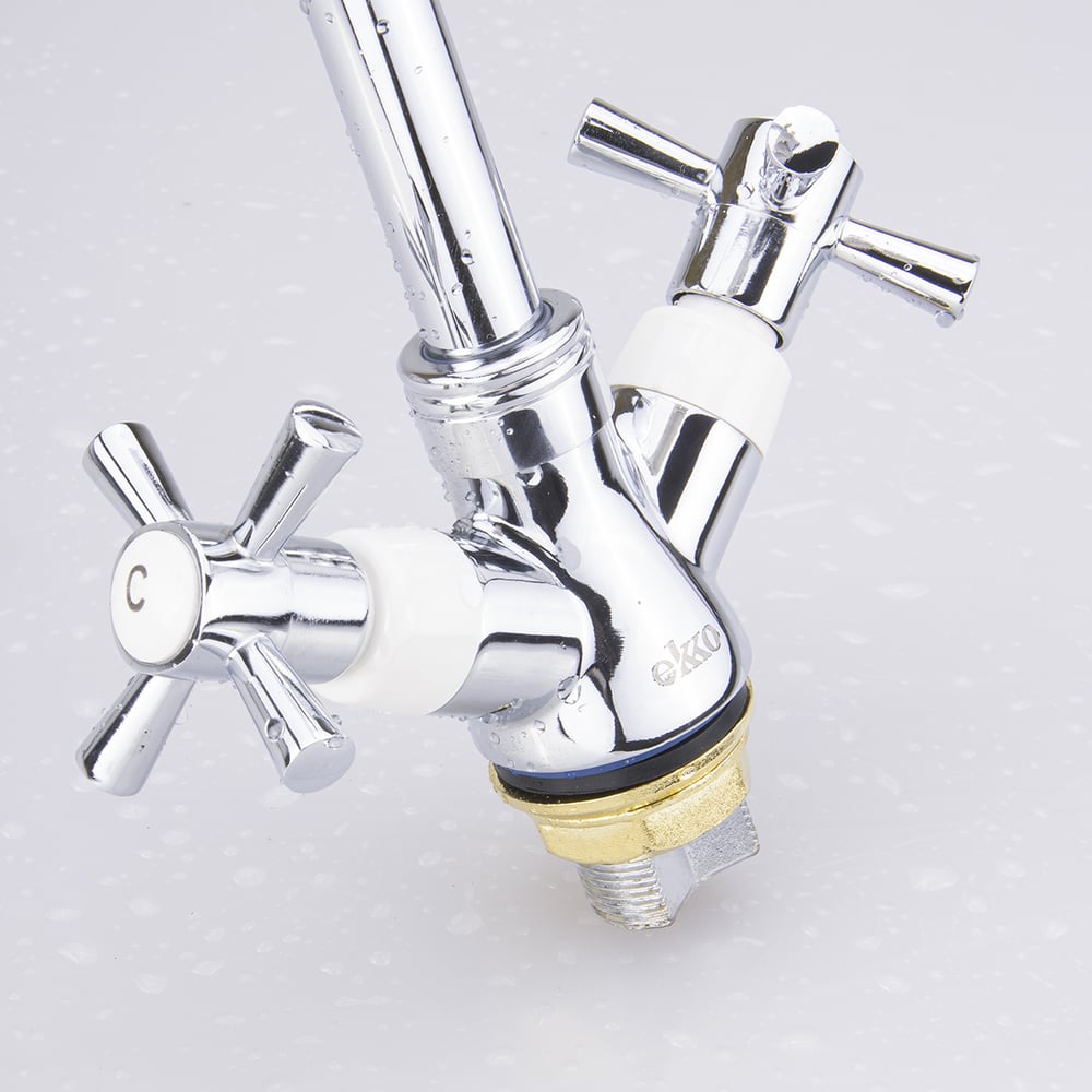 Смеситель для кухни с гайкой Ekko с белым наконечником и ручками E49118-7