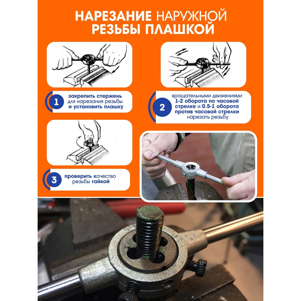 | Min размер резьбы М (плашки) | М3 |