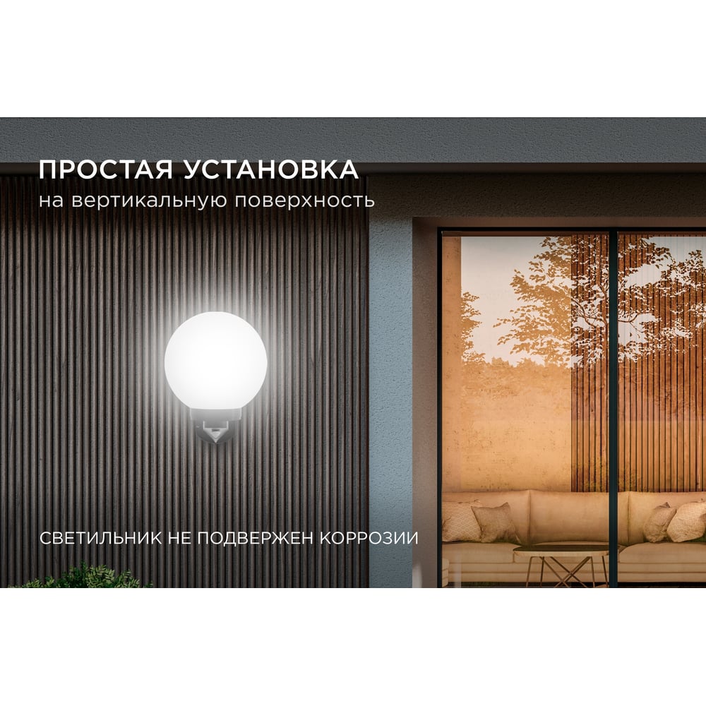 Уличный светильник-шар с датчиком движения Apeyron 250мм, настенный крепеж, молочный НБУ21-60-251
