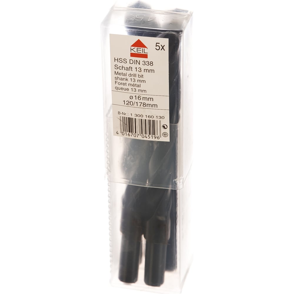 Сверла 5 шт. HSS DIN 338 проточенный хвостовик 13 мм, 16,0х178х120 мм KEIL 300160130