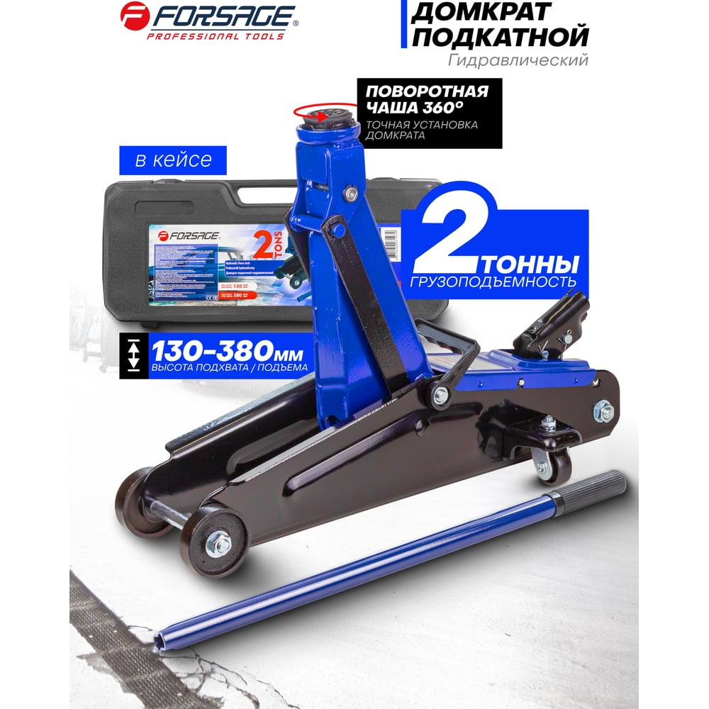 Домкрат подкатной гидравлический Forsage 2т (h min 130мм, h max 380мм) F-T83000F(54654)